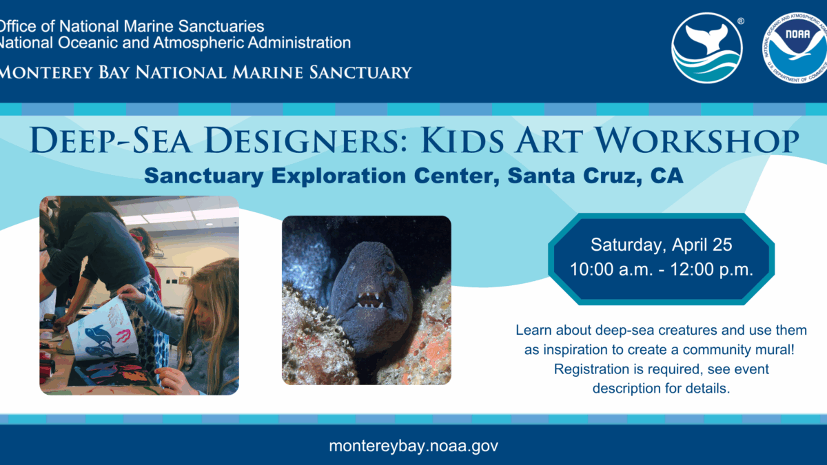 Explore the deep at a kids art event on Saturday, April 25, from 10:00 a.m. to 12 p.m. at the Sanctuary Exploration Center! Kids will learn about deep sea animals in Monterey Bay National Marine Sanctuary, and use them as inspiration to create a communal work of art. The finished piece will be on display at the center through May,…